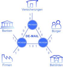 Η εφαρμογή αυτή αναπτύσσεται στο πλαίσιο του προγράμματος “πύλες πολιτών” (“Bürgerportale”) από το Υπουργείο Εσωτερικών σε συνεργασία με ιδιωτικούς φορείς, τη διοίκηση και σωματεία μκο. Οι πολίτες θα μπορούν να αποστέλλουν μηνύματα και έγγραφα μέσω του συστήματος De-Mail εμπιστευτικά, αξιόπιστα και χωρίς αλλοιώσεις. Το σύστημα αυτό έχει το χαρακτηριστικό ότι πίσω από κάθε διεύθυνση De-Mail βρίσκονται πρόσωπα η ταυτότητα των οποίων έχει επαληθευτεί, ενώ συμπληρώνεται με ένα σύστημα αποθήκευσης εγγράφων, το De-Safe και ένα σύστημα επαλήθευσης ταυτότητας το De-Ident.